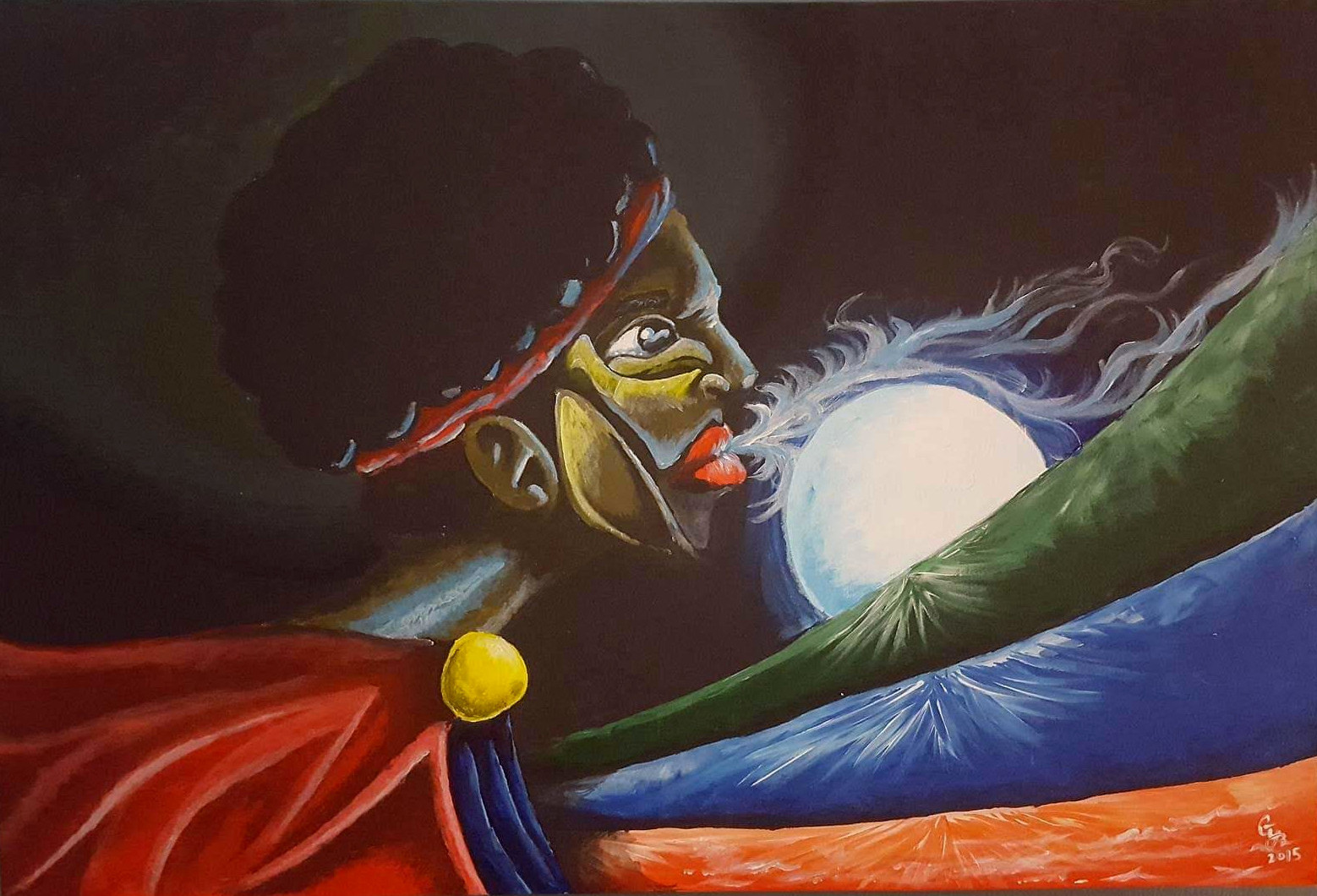 This is my fifth completed painting that I did in 2015 on canvas with acrylic paint that depicts how I feel when I unleash creativity that has been bottled up inside of me.